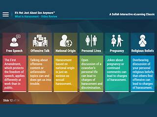 45 Minutes Popular Level: IntermediateThis eLearning course provides a solid foundation for understanding sexual harassment - through realistic scenarios and an informative narrator. Use it to supplement annual refresher sexual harassment-prevention training requirements.